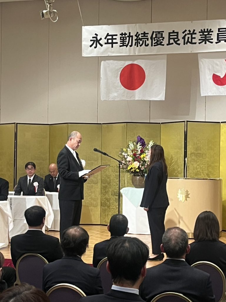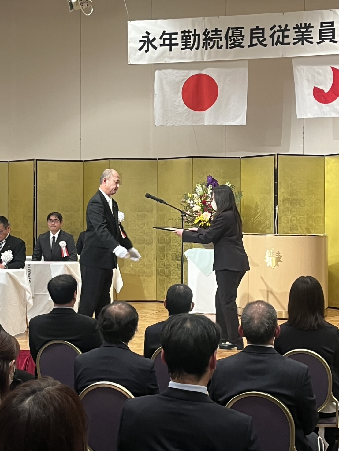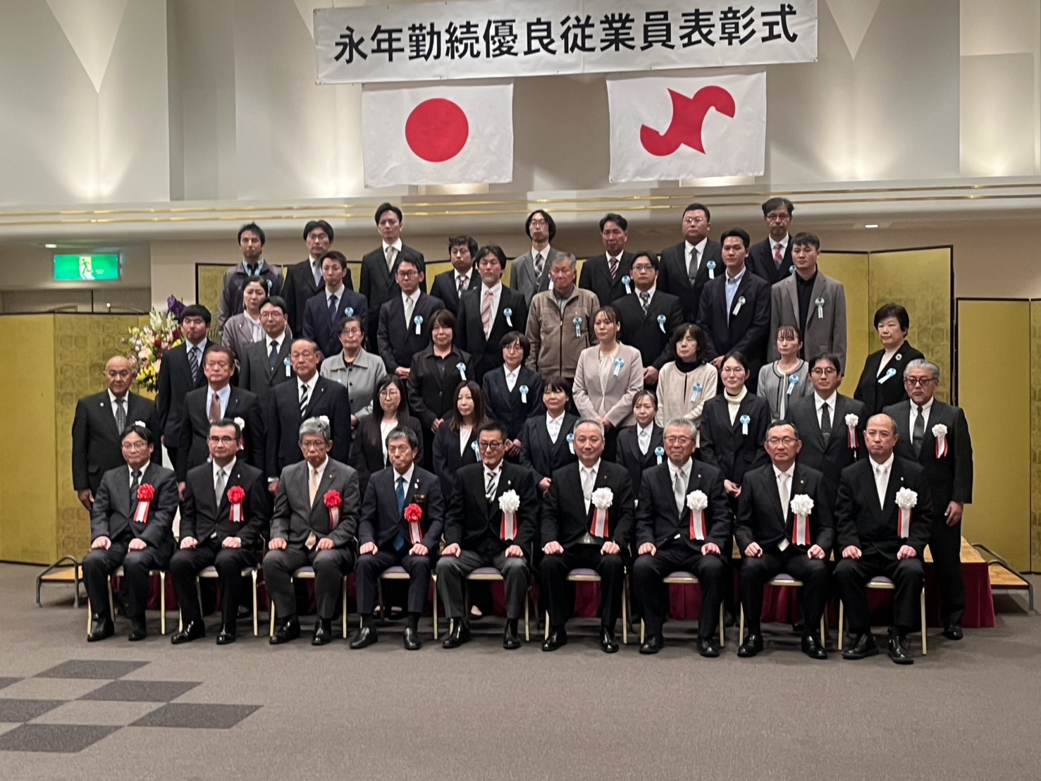 2025.11.21 第75回永年勤続優良従業員表彰 Tweet 第75回永年勤続優良従業員表彰(一関商工会議所)が、11月20日ベリーノホテル一関で行われました。 我が企業グループからは 舞石興産3名、舞石組3名、花泉石油1名 が表彰を受けました。 長年の貢献に心から感謝申し上げます。 受賞された皆様、おめでとうございます✨